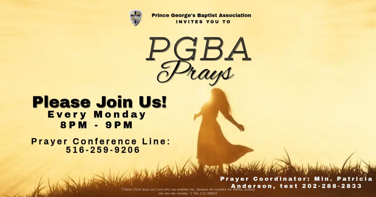 PGBA Upcoming Events For more details or questions on any event, please contact the Administrative Assistant at [email protected]. PGBA PRAYS EVERY MONDAY 8pm-9pm Weekly Prayer Call Line 516-259-9206